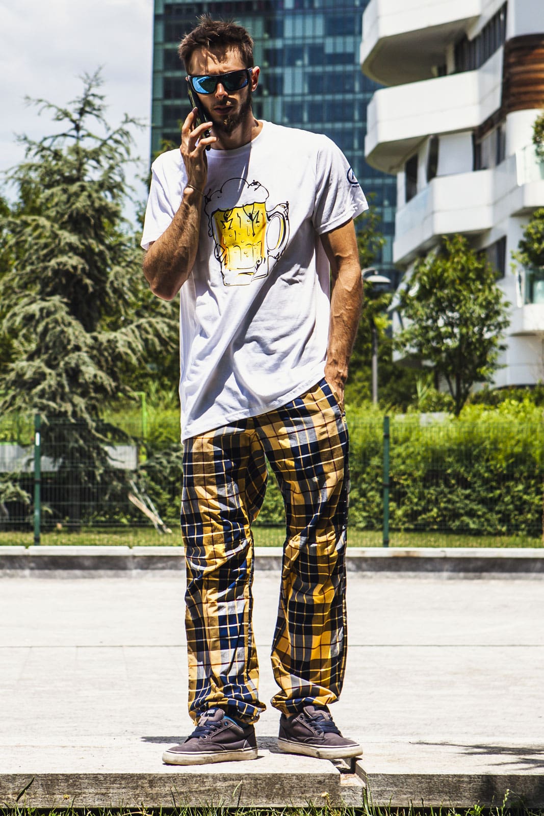 Poplin is a compact and resistant tartan cotton fabric with crosswise ribs that typically gives a corded surface. CLOWN trousers are lightweight, do not change over time and is not likely to deform even after many uses.